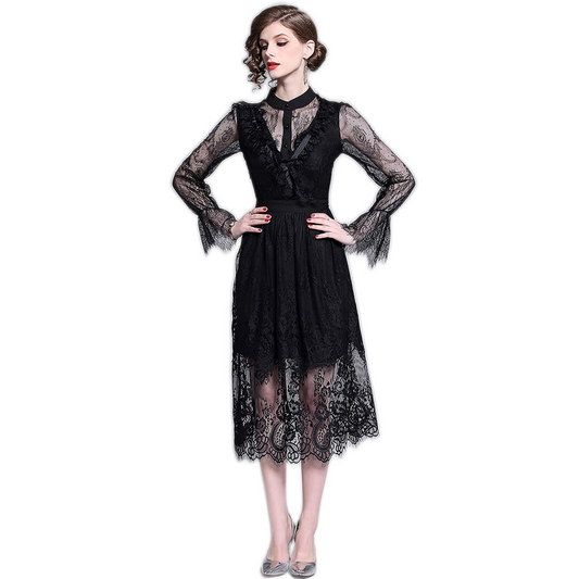 Robe Noir Dentelle Manche Longue