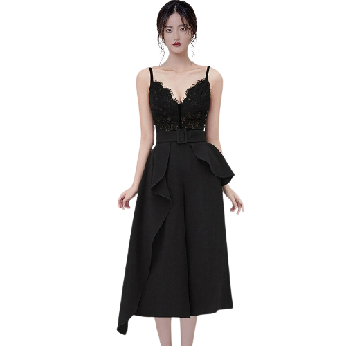 Robe Noir Dentelle Mi-Longue