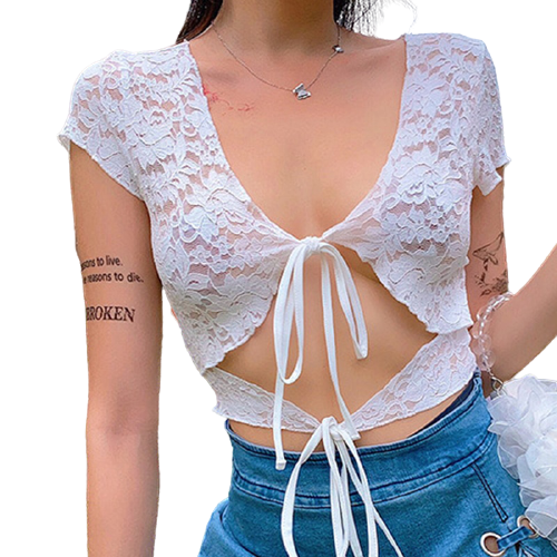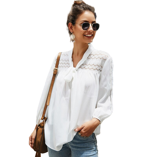 PromotionTee Shirt Manche Longue Dentelle Blanc